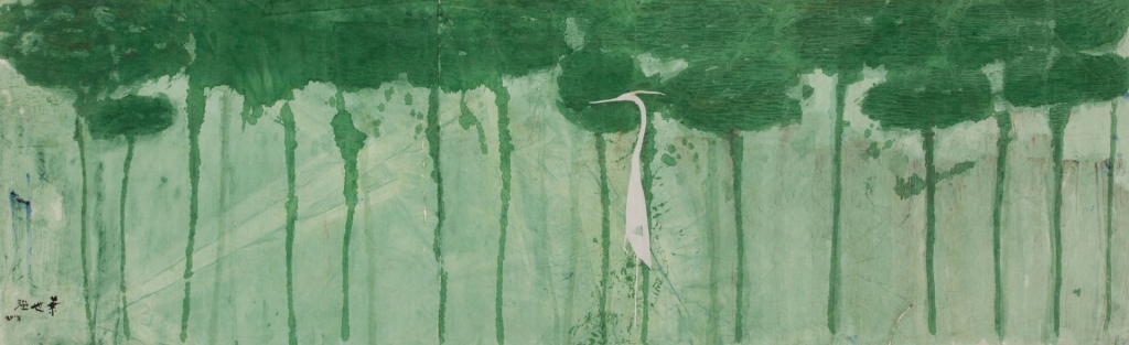 葉世強,《綠荷白鷺》,彩墨紙本,91.5 × 295 cm,2011。(漢雅軒提供)