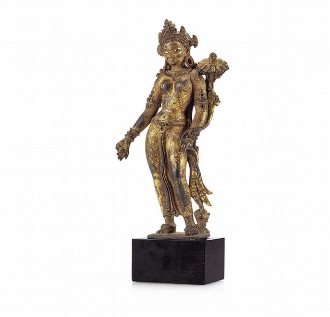 編號73的13世紀尼泊爾〈銅鎏金綠度母立像〉,以120.3萬歐元成交。