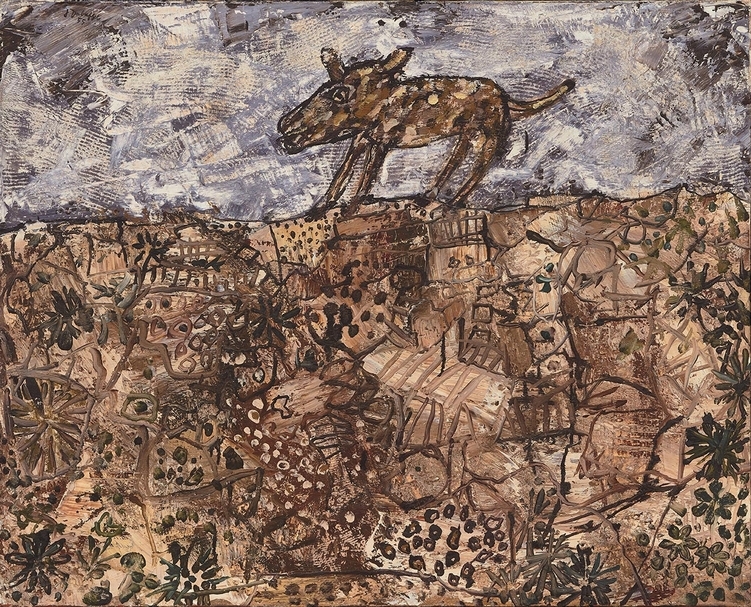 尚.杜布菲(Jean Dubuffet),《獵犬》(Le Chien Rodeur),油彩畫布,81x100cm,1955。(富藝斯提供)
