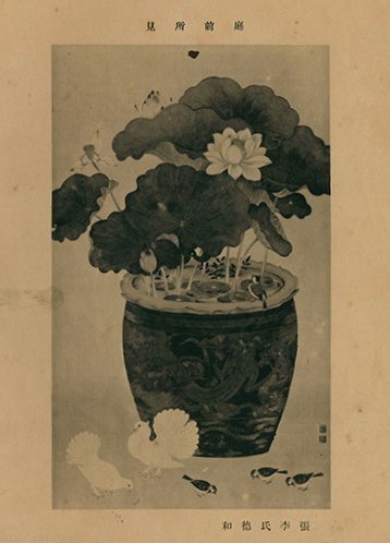 這亦是詩媽第一件得獎作品,而畫面中間的褐釉色龍紋蓮花缸,是清晚期中國華南地區所生產的器型,是文人附庸風雅的好古之物;一旁的孔雀鴿都是台灣大戶人家的象徵;點景的麻雀,為庭園增添了些許戶外「寫生」的感覺。逸園主人雖然無法為了寫生時常外出,但一方庭園讓「野生的麻雀」進出停留,也算方便跟上「寫生熱潮」。詩媽1933年初試啼聲後,便開始斜槓,畫業屢獲佳績。1938年〈閒庭〉第一回府展入選、1939年〈蝴蝶蘭〉第二回府展入選、1940年〈扶桑花〉第三回府展特選及總督賞、1941年〈南國蘭譜〉第四回府展特選、1942年〈鳳凰木〉第五回府展推薦畫家,同年榮獲「推薦畫家」與「無鑑查畫家」的榮譽。