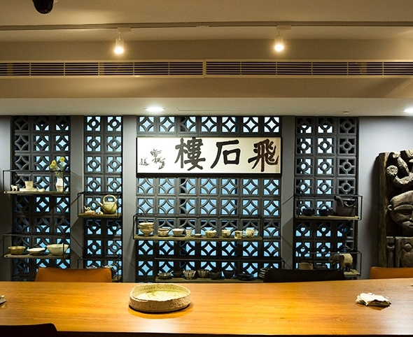 「飛石樓」位在台南市老街區永福路,隱藏在人們稱之為「蝸牛巷」裡的一座大樓的8樓,從今年初開業後逐漸在藝文圈傳出名聲,聽過的人到台南,都想一探這座「樓」。「飛石樓」龍飛鳳舞的三個字,濃濃的席德進風格,讓人們一踏入這處空間,就被「飛石樓」這三個字吸引。從四川一路來到台灣的藝術家席德進,他是兩岸大時代下被迫分離的無數家庭之一,他揮毫「飛石樓」三字為自己工作室的堂號,取名來自於家鄉的「飛來石」,撫慰思鄉之苦。輾轉收藏這塊堂號的李贊壽,是席德進畫作的愛藏者,他打造這處空間,就決定取名為「飛石樓」。
