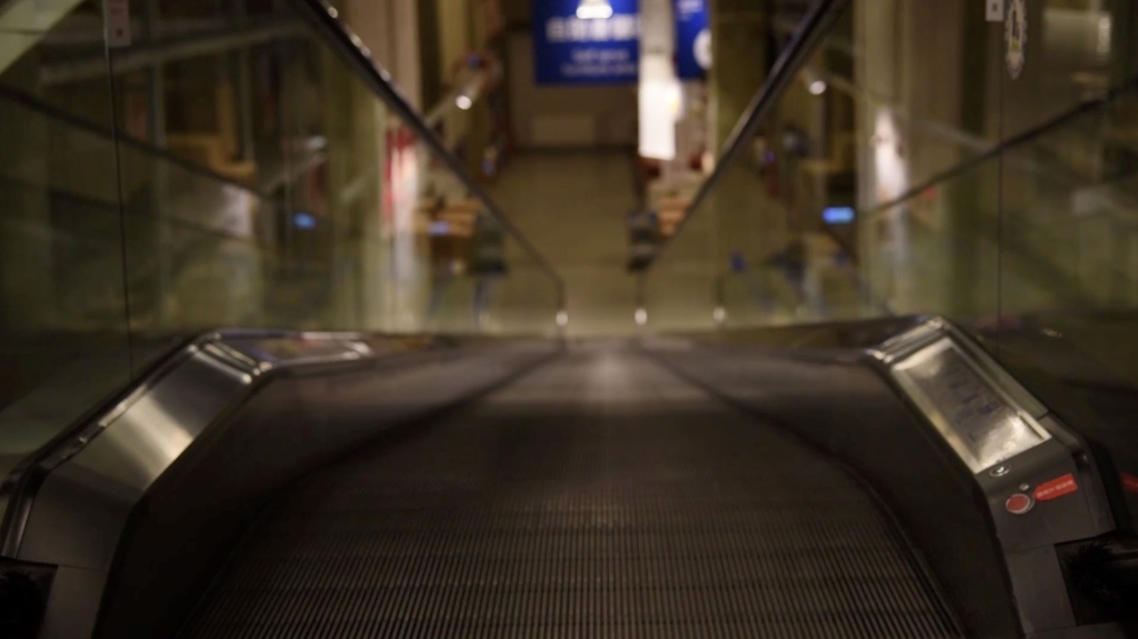 《前奏曲》是位於展場入口的第二件作品,一件循環播放的錄像裝置。錄像使用向後拉遠的鏡頭(dolly back),拍攝跨國家居用品賣場中的超級長電扶梯。電扶梯履帶被鏡頭轉化為推軌,緩慢且平穩地帶動視角後退。與履帶的動態影像同步的,是提琴類弓弦樂器悠遠綿長的擦弦聲。提琴出現於十六世紀的義大利,琴弦由羊腸製成,弓毛則取自馬尾,皆取兩物之「長」與「韌」。跨國大型賣場架設如此長的電扶梯,則是為了容納更大量的消費者與商品。如何在「有限」且「單向」的運動中,盡可能延緩其速度、拉長其時間?電扶梯的設計者,似乎與製琴師,擁有相同的技術欲望。踏上電扶梯前,迷宮般的賣場動線,更讓人聯想到尚未製成弦前,蜿蜒曲折的羊腸。