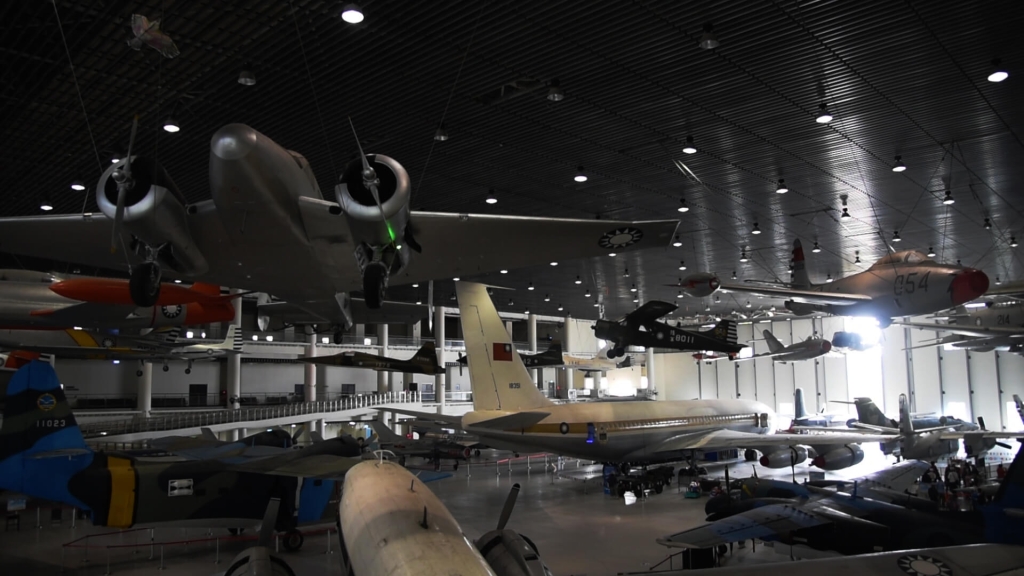 《航空展示館》是位於地下室的第三件作品,在空間上位於《喵喵凳》的樓層正下方,是一件錄像裝置。錄像拍攝於高雄岡山的「航空教育展示館」,館內展示多架已除役的軍機。翔宇則透過空拍機的「飛行器之眼」,配合如現場轉播般的旁白,試圖藉由影音與想像,「啟動」被靜置的軍機,同時也「啟動」被靜置的歷史。《喵喵凳》靜置「運動器官」並對其施加偏移的壓力,《航空展示館》則靜置「運動工具」並對其施加偏移的敘事,兩者皆巧妙地利用運動的相對性,藉由對「運動技術」的靜置,使被靜置的歷史與政治,得以在回憶與想像中被改寫與重塑。