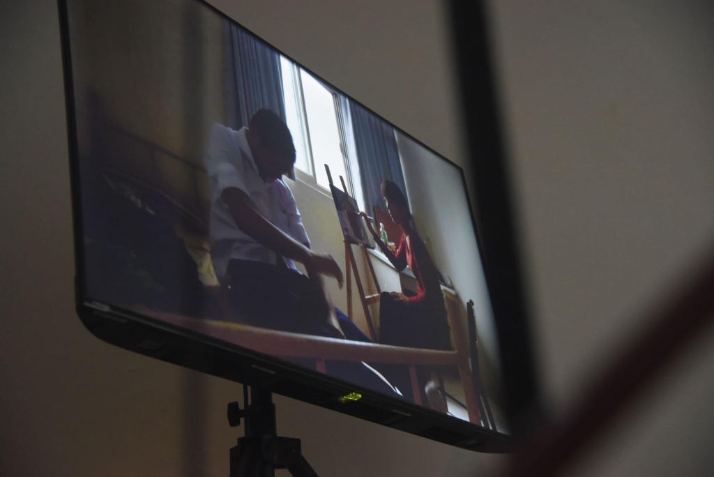 《隔壁房間》是位於三樓的一件錄像裝置。居住空間的陌生化,始於工業革命後的城市。勞動者們離開雞犬相聞的農村,來到工業化的現代城市謀生,因為無力支付高昂的通勤成本,只得客宿在價格低廉的賃屋處。為了容納更多住客,並降低居住的成本,而採用輕薄的隔間牆材料,由於隔音極差,因此創造出視覺私有化、聽覺公共化的居住空間。由於鄰居皆陌生人,居住在視覺與聽覺斷裂的陌生空間中,在缺乏安全感與信任感的狀況下,想像力透過被遮蔽的視覺與模糊的聽覺,而得以滋生。聽覺的穿透與交疊,則彷彿溶鏡蒙太奇,模糊地組織起鬼影幢幢的可疑敘事。《隔壁房間》為了在有限空間中極大化其使用價值,而在視覺與聽覺之間產生某種過度壓縮後的扭曲,此一技術欲望所產生的感官變形,亦與《前奏曲》有同工之妙。