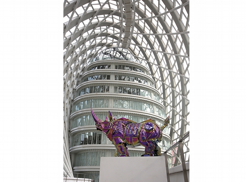施力仁《哈雷金鋼》.不鏽鋼電鍍彩色鈦合金.198×60×130 cm.2015。(現代畫廊提供)