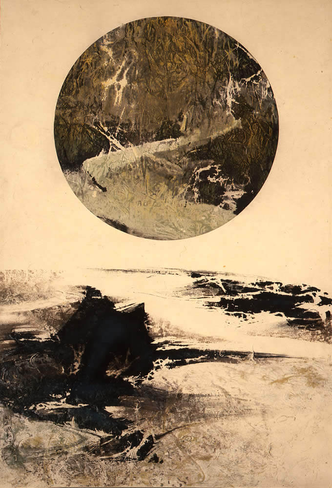 後來月亮意象仍時常出現在劉國松創作當中,比如1971年創作的《月蝕》系列,此時劉國松已改用「水拓」技法創作,也就是以油墨滴於水面,出現各種紋路,再以紙浸水轉印上去。而面對月亮周而復始卻又日日變化的樣貌,劉國松又有《月之運行》等作品,將月亮盈虧的形象呈現在同一個畫面當中,彷彿有著靜置的影像或底片之感。
