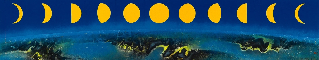 1970年代李錫奇受到普普藝術與歐普藝術的影響,開始把現成物加入作品,並以幾何圖形構成畫面。著名的系列作品《本位》以圓形為主要的畫面構成,雖然沒有明示月亮,但透過多張連作的不斷變化,彷彿讓觀者感覺到月象變化的不同樣貌。1970年代以「月之祭」、「月之焚」等題目所創作的一系列套色網版作品,宛如筆觸一般的漸層色塊成為畫面的主軸,但上方總會有圓形象徵月亮,成為整張畫面中最點睛的部分。蕭瓊瑞認為李錫奇創作這一系列作品,也與阿波羅11號登陸月球有關,但更直接的因素,或許是與妻子古月(胡玉衡)的共同創作,古月寫詩,李錫奇印製版畫,成就出詩畫合璧的古典情趣。