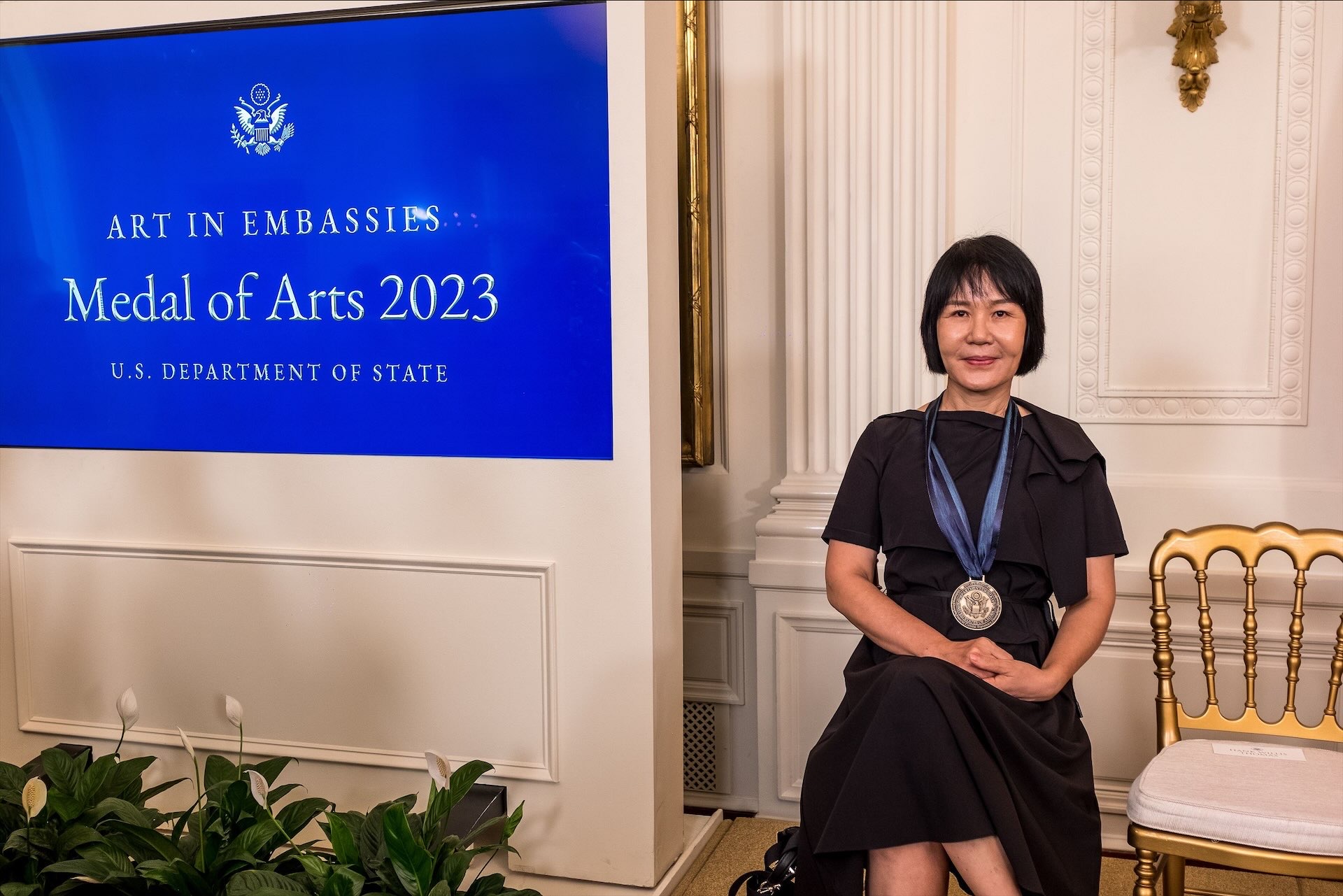來自臺灣的藝術家王淑鈴於美國時間9月13日在白宮獲頒美國國務院「使館藝術計畫」(Art in Embassies)藝術獎章(Medal of Arts),由美國第一夫人吉兒拜登(Jill Biden)親授殊榮。她除了是首位獲此獎項的臺灣藝術家,今年在適逢這項計畫成立60周年的時刻獲獎,更顯得意義非凡。