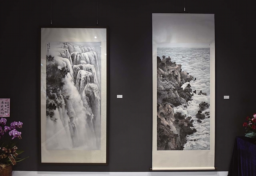 林錦濤2013年作〈銀河倒瀉〉及〈和平島奇岩〉,皆為182×91公分。攝影/洪國峻。