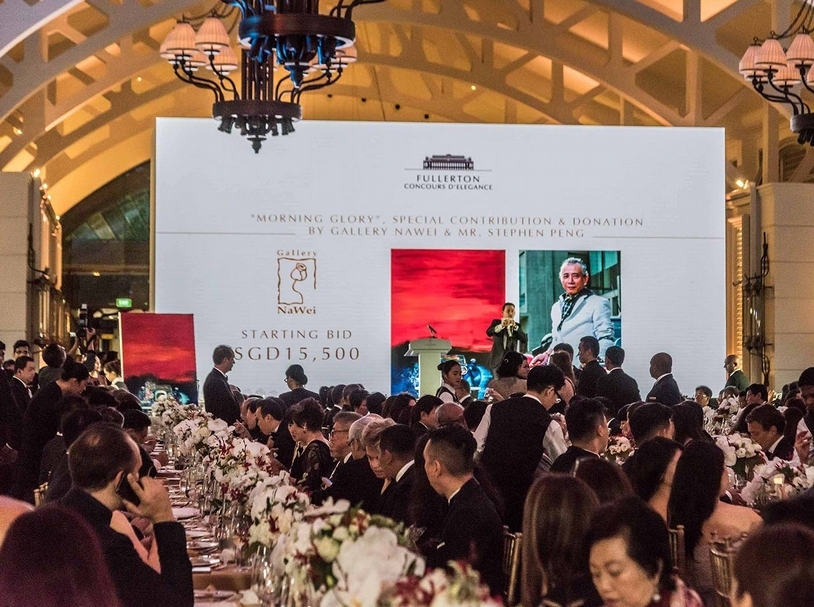 如此作品得來不易,源自一次特別的邀請。慶祝浮爾頓大廈「The Fullerton Building」建立90週年,酒店舉辦浮爾頓古董車競賽「The Fullerton Concours d’Elegance」。為配合連續三天的90週年慶,特邀知名華人畫家彭雄渾先生於那薇畫廊及酒店大廳,展出為此次慶祝活動為期一個月之相關畫作。彭雄渾先生特別捐贈兩幅作品於晚宴現場義賣,其所得將全數捐贈於6月在酒店舉行之「新加坡總統慈善挑戰活動 Singapore President's Challenge Charity」。