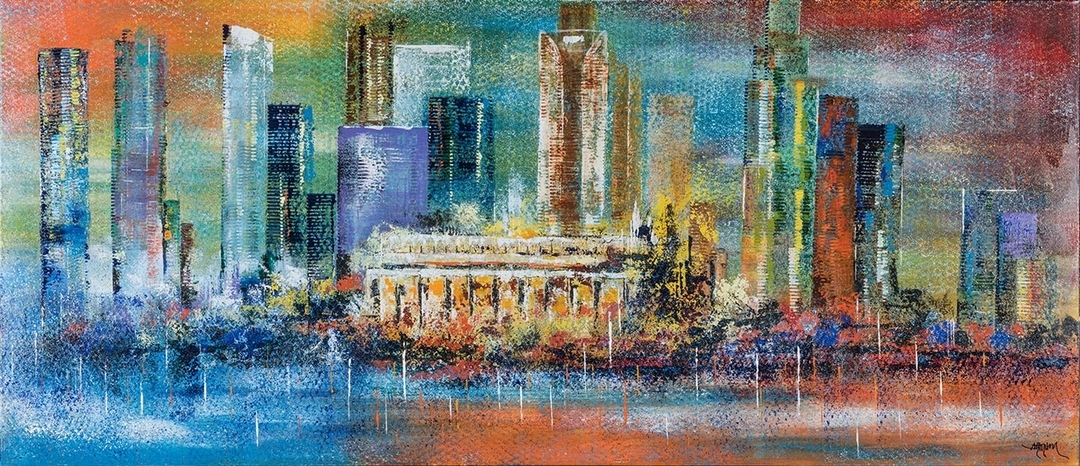 彭雄渾,《Singapore 2018 Series – Skyline II》,壓克力顏料、畫布 130×300cm,2018。(Stephen Peng Studio提供)