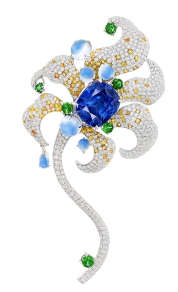 讓收藏家注目的拍品有一枚10.17克拉喀什米爾天然無燒藍寶鑽石胸針,色澤柔若蠶絲、深邃濃郁,在任何燈光下都顯得光彩照人,這顆VIVID BLUE完美的喀什米爾藍寶石稀珍程度,吸引國內外買家爭相鑑賞。