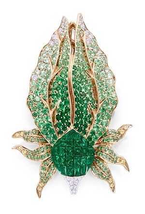 沙弗萊鑽石別針TSAVORITE GARNET AND DIAMOND BROOCH。圖片提供:侏羅紀股份有限公司