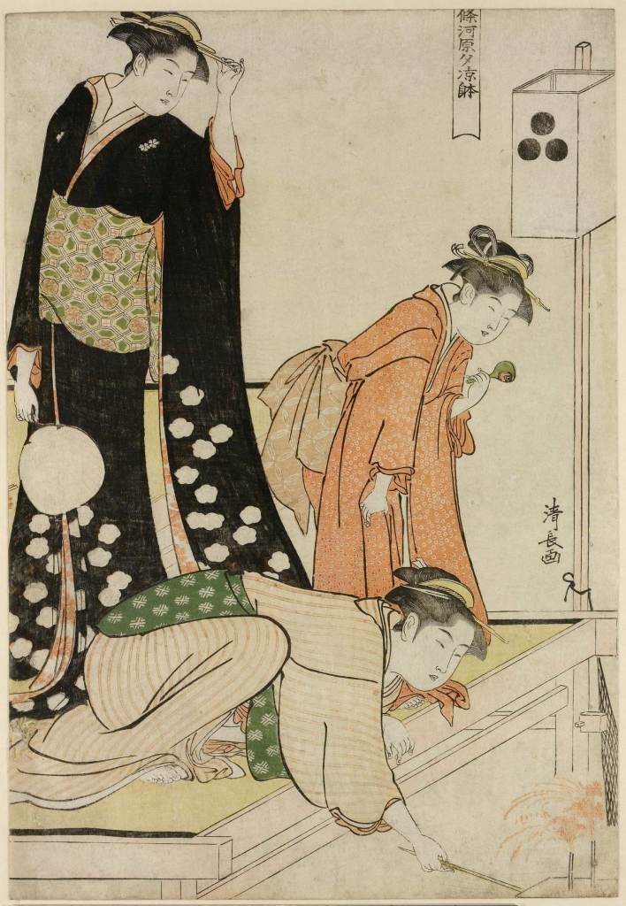 1659年著名的百年煙火鋪的創始人——初代鍵屋彌兵衛來到江戶開設店鋪。據說在此之前,日本的煙火多是由中國進口。而鍵屋所製造的煙火,是將火藥製成小球,放進蘆葦管內,然後以「火の花」、「花の火」、「花火」等名稱推出販售。結果,這些煙火迅速地風靡起來,成為庶民熱銷商品。當夏夜降臨,隨著白天的酷熱漸漸消散,涼爽的風開始吹拂,可以聽到遠處傳來煙火的聲音。煙火是江戶時代夜間河畔不可或缺的景色,在17世紀中葉,深受人們喜愛。