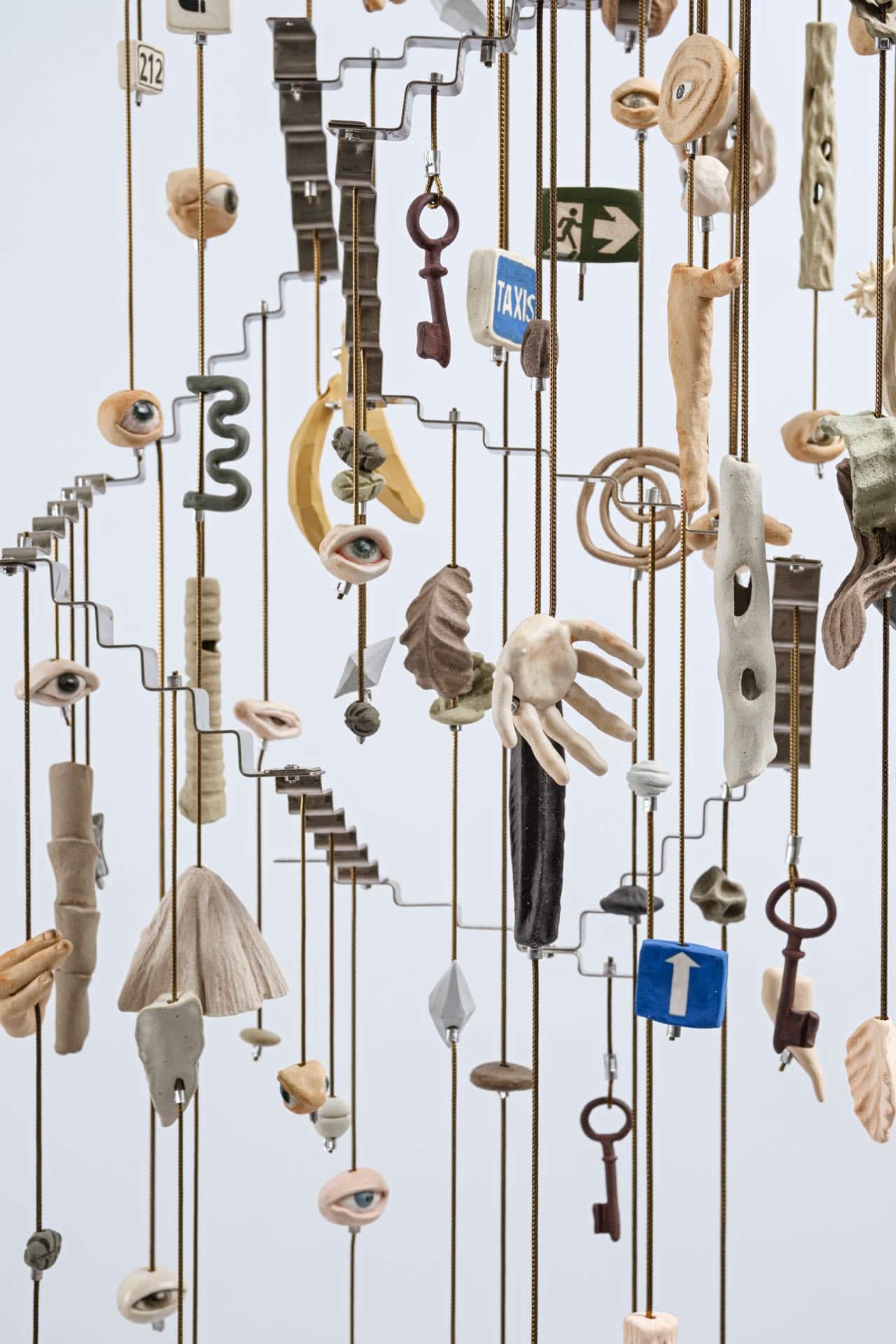 楊季涓長期探索人與地方、物件以及事件間的心理關係。她透過雕塑及聲音裝置作品表達細膩的情感,《你的淚痕是我未來的眼淚》是藝術家為本屆雙年展而作的全新委託聲音裝置,試圖將微小生物的聯想和夢魘的恐懼轉化為實體化的陶器雕塑,伴隨著這些小物件彼此碰撞時發出的聲響,反映了對焦慮及恐懼所歷經的掙扎。