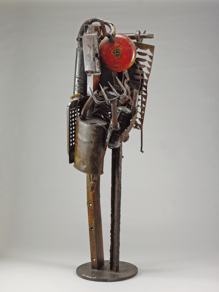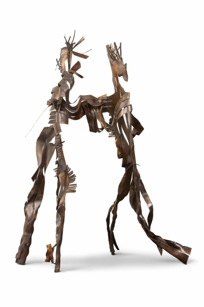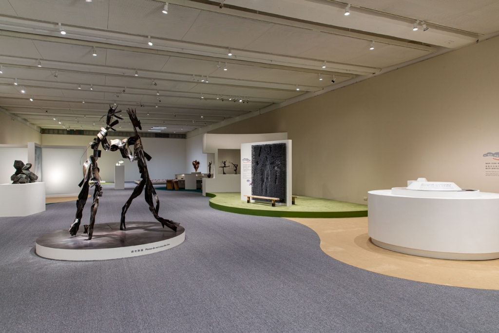 「雕」與「塑」分別代表著材料的削減與添加,展場中可以觀察到作品不同材質的特性與表現,如陳庭詩的《將軍》是藝術家將一般被認為是「破銅爛鐵」的廢料或無法再運作的零件重新組裝,塑造出抽象與具象交融的將軍形象。而在作品《角力》當中,更可以看出藝術家夏陽對作品進行的加加減減,他將繪畫的筆觸具現於立體的金屬片雕,讓原先堅硬的媒材具有輕盈感,在不同觀看角度下產生靈活躍動的動態。