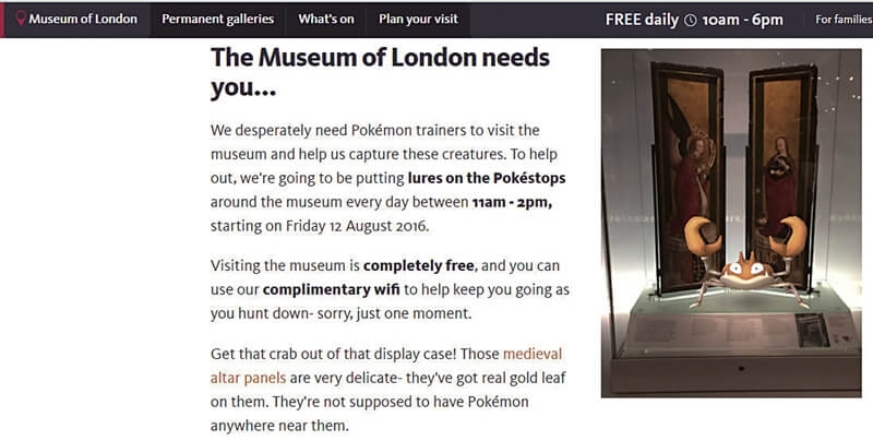 以「StreetMuseum」獲得成功的倫敦博物館,如今也打著「倫敦博物館需要你」的口號,在官網上招募「寶可夢訓練師」。(翻攝自網路)