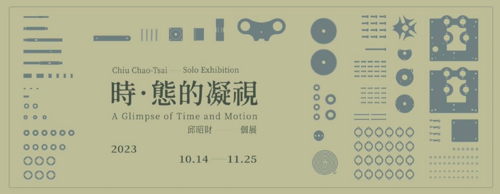 展覽以博物館陳列展品的形式展出邱昭財「發條時間」系列新作共15件。「發條時間」是藝術家自2021年來主要創作的系列之一,以「類似於玩具的互動機制」作為創作的主要概念,運用發條動力,結合生活中觀察的片段或是抽象造型場景,用動態標本形式呈現,再以玻璃鐘罩將他們保存下來。