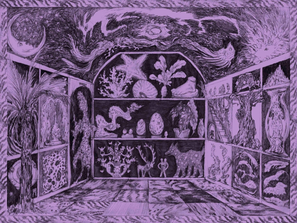 「顏景弄靈儀—李俊陽作品展」集結了李俊陽過去至2023年的作品,總件數超過上百件。除了年分跨距,媒材也有油畫、壓克力顏料畫布、木板畫、木雕彩繪、紙上繪畫,以及空間裝置等各式的媒材。最重要的「七彩迷魂妙畫工」系列 ,是這十數年來作品風格的回望,也表現出他一路行來多元面向的創作軌跡。
