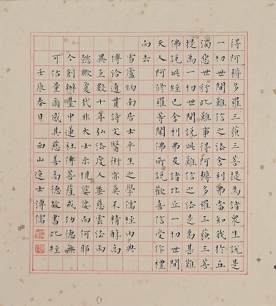 溥儒1952年作〈佛說阿彌陀經〉,水墨紙本,各27.5×24.5公分,估價80萬~120萬港元。圖為九頁選一。圖︱邦瀚斯香港