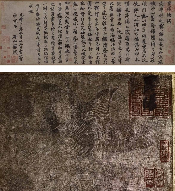 圖1 傳蘇軾〈昆陽城賦〉,私人藏。下為影像處理局部圖。圖∣國立故宮博物院、何炎泉