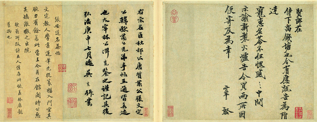 張方平(1007~1091)〈書尺牘(名茶帖)〉(圖11),此札書寫於相當精美的卷草砑花箋上,顯然是因為致謝友人餽贈名茶而特意挑選。收信人打開信的第一印象就是拿在手上的紙,在物質上必然可以透露不少訊息,例如書寫者心態、紙張工藝、紋飾意涵等,可說是這些文人所普遍共享的書寫文化。