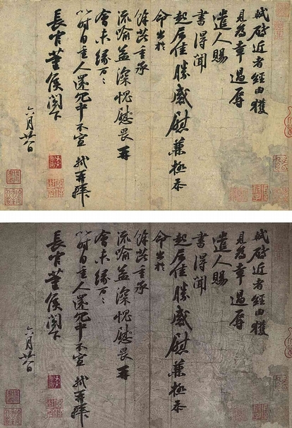 圖10 王鞏〈書尺牘〉,國立故宮博物院藏。下為影像處理圖。圖∣國立故宮博物院、何炎泉