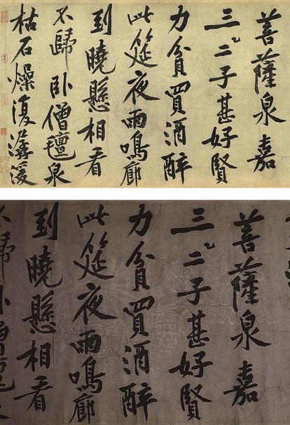 圖3 黃庭堅〈自書松風閣詩〉局部,國立故宮博物院藏。下為影像處理圖。圖∣國立故宮博物院、何炎泉