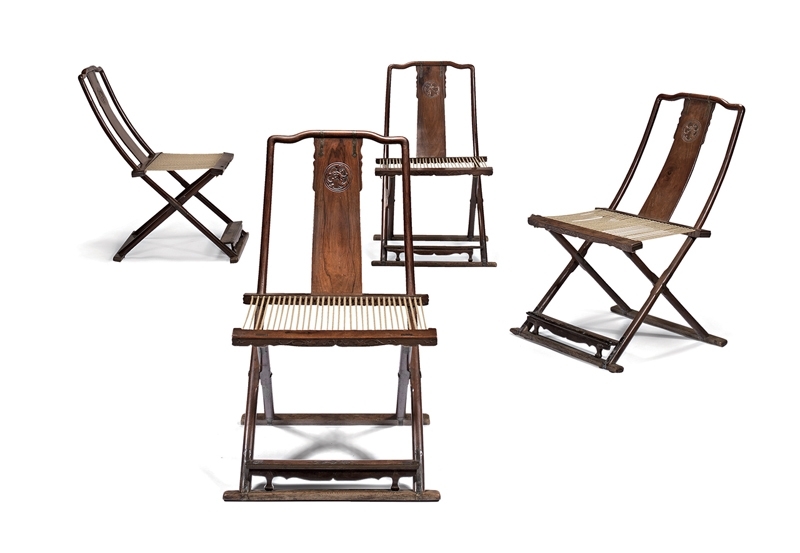 堪稱此季拍賣最大亮點的黃花梨家具,由於各地拍品大量湧現,買家因此更加精挑細選,於是擁有知名著錄之收藏專拍的邦瀚斯,與各拍品單打獨鬥、缺乏有力幫手且重點拍品估價高昂的佳士得呈現兩樣情。邦瀚斯拍前強力宣傳的義大利外交官塔里安利‧得‧馬基奧侯爵(Marchese Taliani de Marchio)收藏特輯中的黃花梨家具脫穎而出,幾乎博得滿堂彩,推出七件,成交六件,其中編號80的16或17世紀〈黃花梨團龍紋交椅〉四張成堂,十分難得,預估價不過15萬~20萬英鎊,成交價卻高達529萬6250英鎊,約預估低標的35倍,奪下此季高價桂冠;家具類居次者為該專輯編號86的16或17世紀〈黃花梨圓角櫃〉,預估價20萬~30萬英鎊,168萬8750英鎊成交價約為預估低標8.4倍。