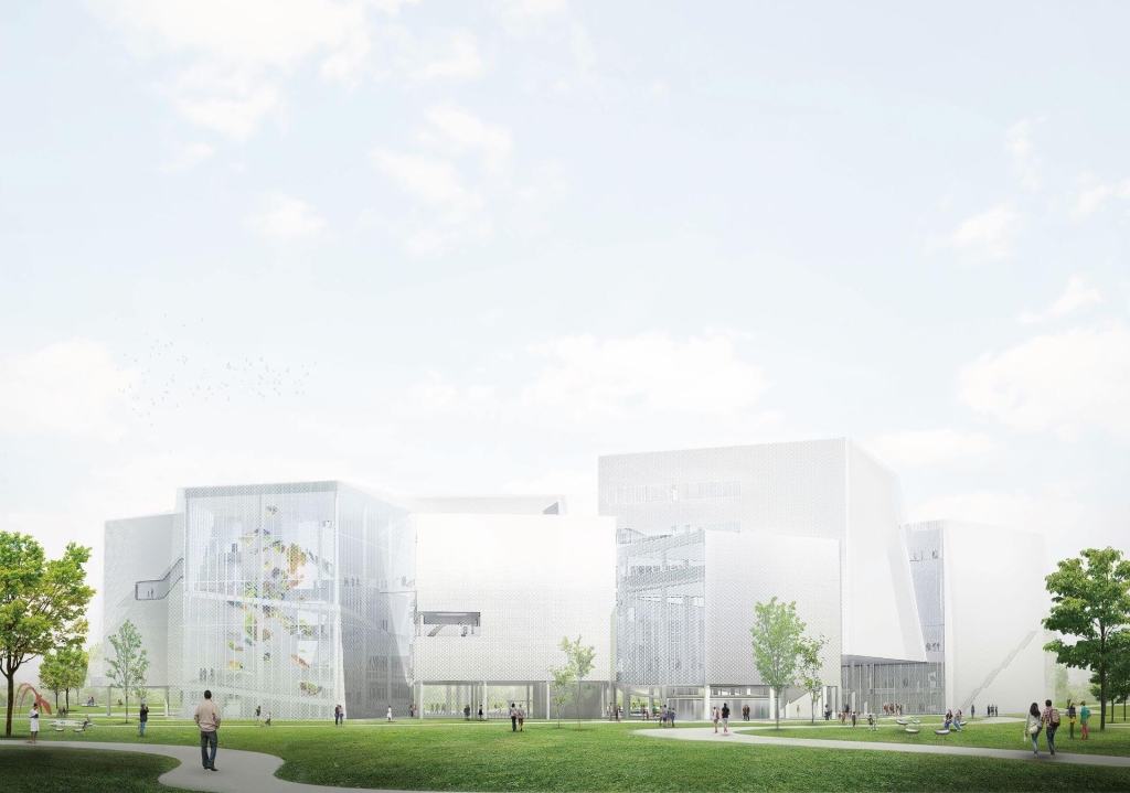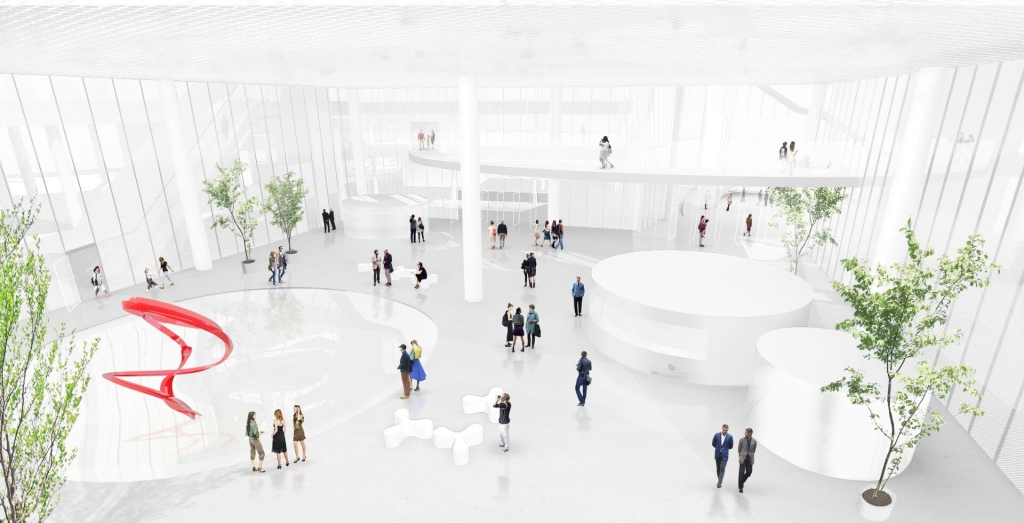 美術館外觀由玻璃帷幕及金屬擴張網構成,柔和建築與綠地之間的界線,也創造空間的通透與流動性。作為專業的美術館,綠美圖設有教育推廣空間和恆溫恆濕的典藏庫房,也設有5間大型展覽室,而挑高26公尺的大廳,未來將會是民眾拍照打卡、一覽中央公園美景的超人氣景點。
