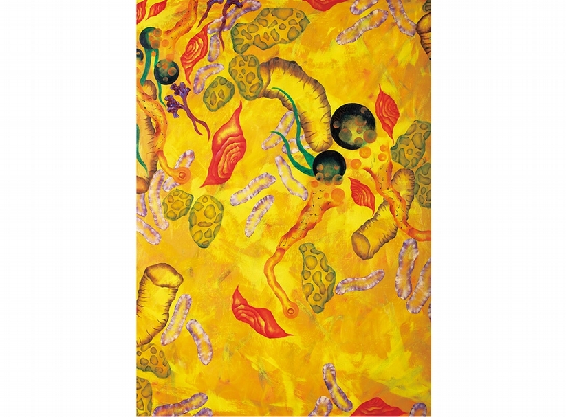 來自花蓮豐濱港口部落,身為阿美族的曾秉芳從未正式拜師學過畫,在即將邁入30歲的人生關卡之際,開始反思尋找生命的價值,毅然辭去醫護的工作,全心投入繪畫世界。累積學生時期熱愛閱讀、大量欣賞各領域展覽的豐沛底蘊,曾秉芳從欣賞到執起畫筆間的摸索全憑一腔強烈熱誠,恣意揮灑出抽象的創作,也細膩地流露出原住民族渾然天成的藝術天分。