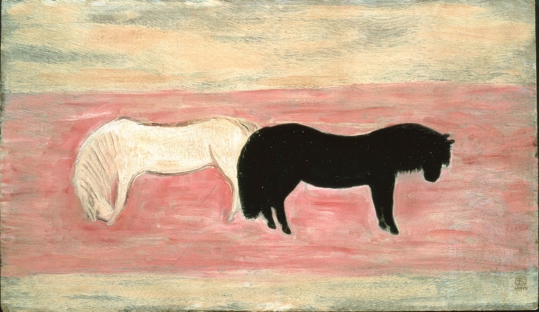 常玉,《白馬、黑馬/豹》(雙面畫), 油彩、木板,30.5×52.4cm,1930-45年代。(大未來林舍提供)
