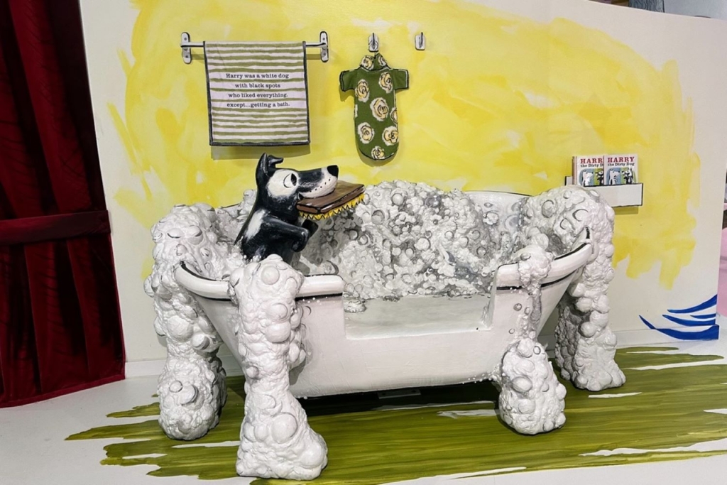 展場裡一個又一個熟悉的故事角色和場景,讓讀者迫不及待一一探索,有《瑪德琳》、《巫婆奶奶》、《青蛙與蟾蜍》、《好奇猴喬治》、《好髒的哈利》、《賣帽子》等,大家熟知的美國兒童文學經典,也有《小毛不可以》、《這不是我的帽子》等較為當代的繪本作品。