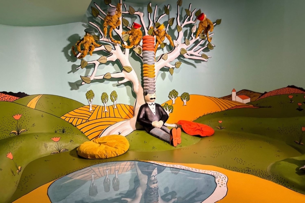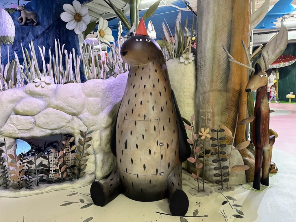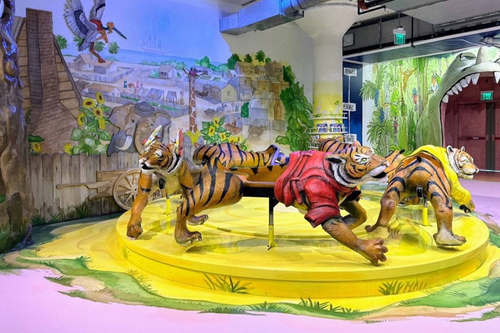 這些展覽,不只是將角色、場景立體化,還有許多互動裝置的設計,例如孩子們可以坐在《山姆和老虎》的五隻老虎背上一起旋轉,或打開《我要找回我的帽子》大熊角色的肚子看看裡面有什麼,以及走進《莎莎摘漿果》真實重現的廚房,拿起桌上的用具想像跟角色一起製作藍莓果醬,或進入《月亮晚安》小兔子的房間,到處找一找小老鼠藏在哪裡。