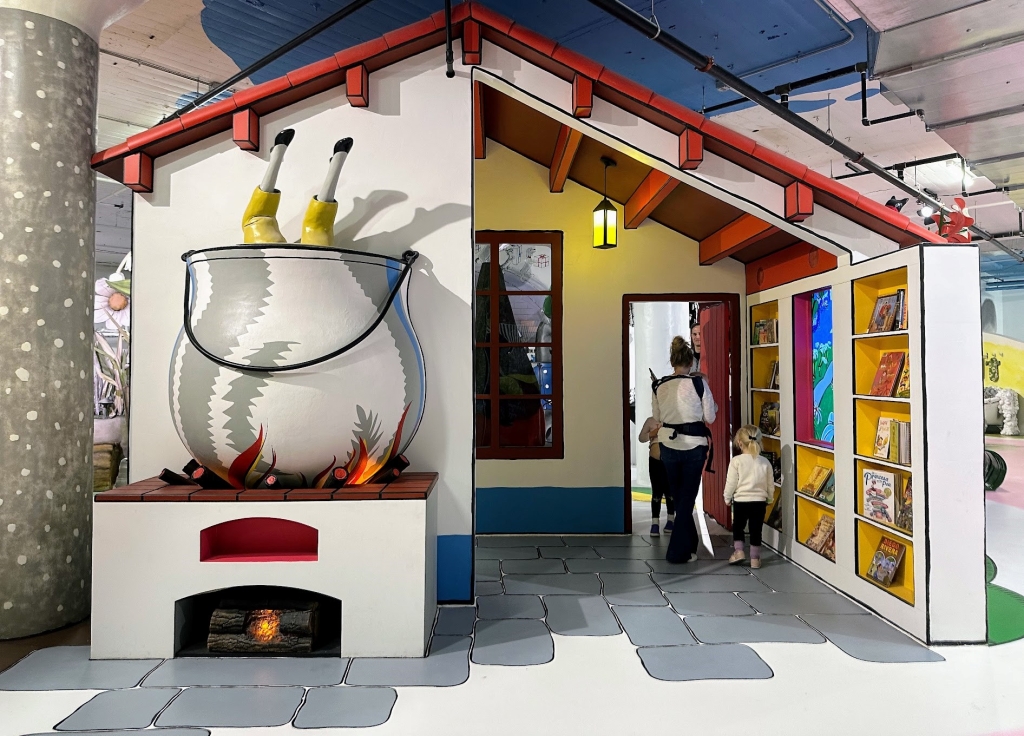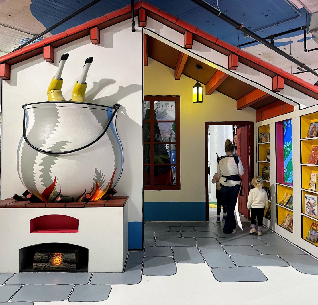 更棒的是每個展示區的旁邊都放了童書、繪本,讓參觀者知道這個場景是出自哪一本書,並且可以拿起書來閱讀。展場中並設計了許多閱讀空間,可以隨處坐下來閱讀。博物館的網站上列出目前展出的場景是來自哪幾本書,爸媽們在帶孩子去參觀前,可以先閱讀這些童書