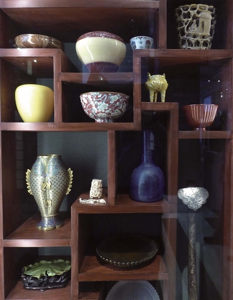 清代康熙、雍正和乾隆三朝,因人口迅速擴增、經濟成長卓越,締造了滿清帝國的高峰盛世。在本展區中,展示主題是以盛清時期紫禁城內的飾品收藏為主,尤重宗教和世俗文物。為了強調清宮的收藏系統與陳設布置,策展團隊特地重現「多寶格」的陳列方式(圖19),來展示藏品的多元化和趣味性。透過大小不同空間的組合效果,讓物件之間彼此產生關聯,相互搭配映襯。這種把實用與怡情結合兼顧的展示模式,體現出清室帝王獨特的收藏理念。此外在文物製作方面,透過不斷的實驗與創新、品味分化以至集大成而建立新傳統,清宮院體作品展現了高超技術能力與鮮明風格特色。其不但跟地方創作有所互動,亦與歐洲藝術彼此交流。