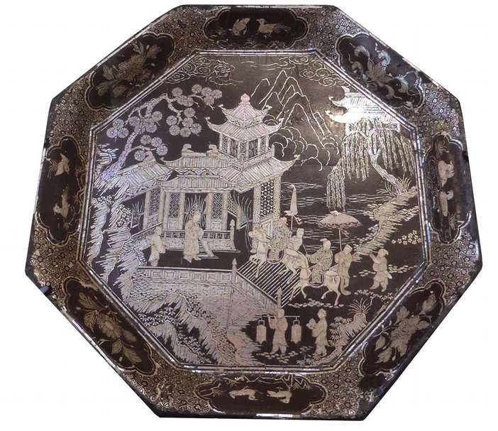 圖18  晚明〈黑漆嵌螺鈿人物八角盤〉。攝影|林逸欣