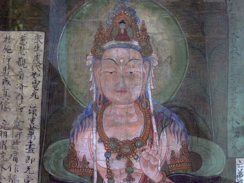 圖13 出土於敦煌莫高窟第17窟的唐代觀世音菩薩像,圖為局部。攝影|林逸欣