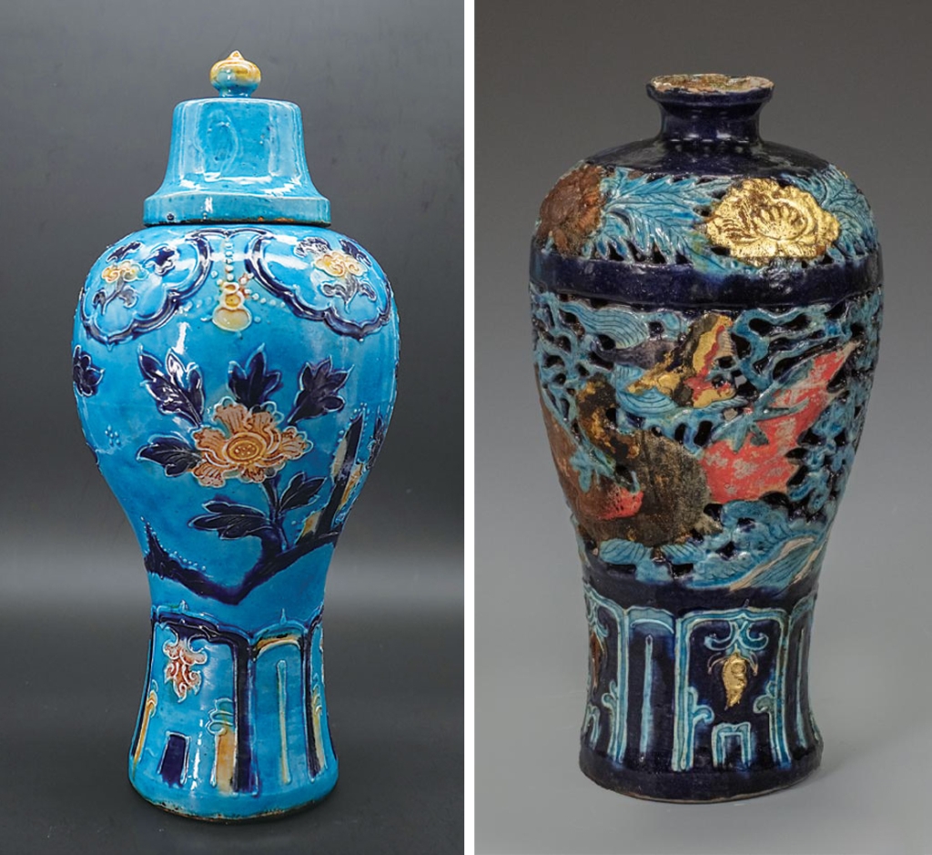 最令人驚豔的發現是一號沉船的琺華釉瓷器。「琺華器」通常先在經素燒的胎體上,用泥料勾出凸起的紋飾輪廓,在輪廓內分別填入各色釉料,再入窯燒製而成。早期琺華器為陶胎,明代景德鎮窯改用瓷胎仿燒。歷來考古發現的琺華器稀少,首度於水下考古出水批量琺華器,意義非凡。這批琺華器以梅瓶、大口罐,蓮池紋、折枝牡丹紋、如意雲頭紋和瓔珞紋為主,更有前所未見的黃金貼箔技巧。除此,還有發現藍釉及白釉的執壺、樊紅的龍紋碗等新器型。在一件紅綠彩碗上發現了丙寅年造的紀年款,即正德元年(1506),提供了明確的定年。