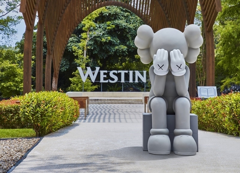 KAWS 《同伴(經過)》(灰)於大溪威斯汀戶外證婚教堂。(中誠拍賣提供)