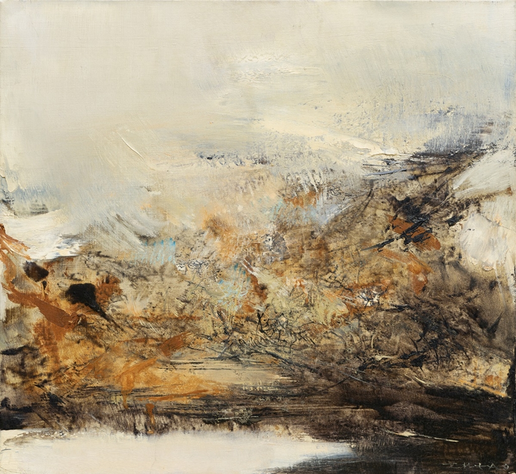 華人經典藝術的領銜作品為趙無極狂草時期的《18.10.68》,呈現其在傳承與革新之間闊步前行的實踐。此作以墨色線條鐵畫銀鉤,曲折於前景;背景則以雪山白雲浮於山,黃石嶔崎磊落並綴以冰藍皴筆疊加層次;將西方特有的光線感融入創作之中,並以東方筆墨刻劃出風景意境的虛實相生。