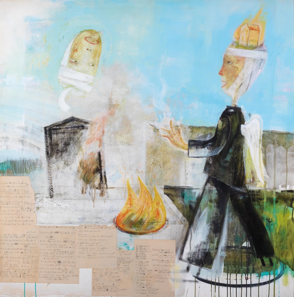 奈良美智在1987年於日本完成碩士學業並第三度前往歐洲旅遊,渴求汲取更多元豐厚的藝文養分,同年創作的《無題》即展現他的積極心態;黑衣少年身上的白色羽翼象徵對自由與希望的期待,而在畫面中出現多達三次的火焰則有浴火重生的正向意涵。另一件繪製於留德期間的《在聖誕沒有真的聖誕樹》,以通體柔和的色調呈現天使細心為幼苗澆水的情景,饒富超現實的詩意想像。