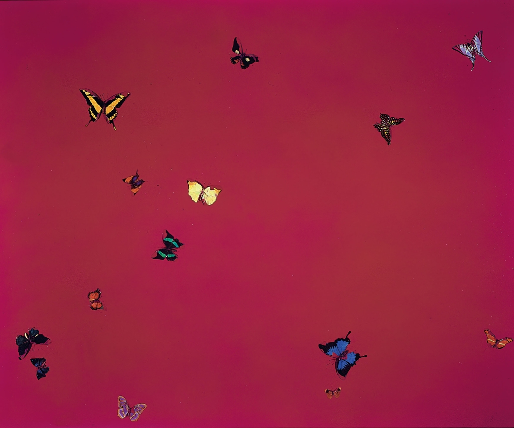 至於在西方當代藝術板塊的亮點則有:達明.赫斯特(Damien Hirst)創作於2001年的《可愛與體貼》為濃烈的紅色背景綴以蝴蝶標本;蝴蝶具有蛻變與新生的雙重寓意,也藉此表達其創作核心精神,探討美、愛情、慾望與生死等複雜人性議題。艾迪.馬丁內斯(Eddie Martinez)的《紫色蘑菇》為2021年的創作,展現街頭藝術的粗獷不羈、以及極具表現力的線條與奔放色彩。羅伯.貢巴斯(Robert Combas)在2008年作的《穿紅色馬靴的阿爾方斯將軍》以高昂的氣勢指涉朝氣與榮光的氛圍;另一件1983年的《無題》反映出早期的蓬勃創造力並將幽默風趣的性格表露無遺。