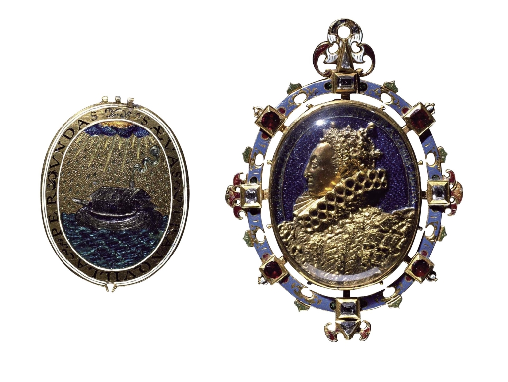 縱使珠寶的先天條件決定一切,「靈光(aura)」卻讓價值有了翻轉的機會──具有歷史意義和巧匠設計的古董珠寶,成為另一種收藏選擇。有別於現代珠寶品牌的經營方式,過往若想要擁有首飾,都需要請工匠特別製作。工匠會依照客戶的需求設計,有時是為了搭配華美的服裝及出席舞會,由於過去以燭光照明,工匠想讓胸針在晚宴中更加耀眼,便會加裝彈簧在鑲嵌寶石的部件上,當佩戴者一有動靜就會搖晃,讓寶石光芒更加靈動;有時則是一種心意的傳達,為了獲得英國女王伊莉莎白一世(1533-1603)青睞,宮廷貴族特別訂作珠寶配戴,珠寶正面是女王的金色側面浮雕,暗示她崇高的王權地位,背面則描繪船在風浪中依舊意志堅定地航行,藉此譬喻英國教會在她的領導下抵抗宗教動蕩。訂做這件珠寶的意義,佩戴者不僅是基於對外在王權的崇敬,而更著重在表述伊莉莎白美德和容貌,傳達出個人的景仰。這些精緻的手工和細膩巧思,讓古董珠寶與機械化時代來臨之後、大量生產的珠寶款式截然不同,一旦上手把玩,即能感受獨特的魅力。