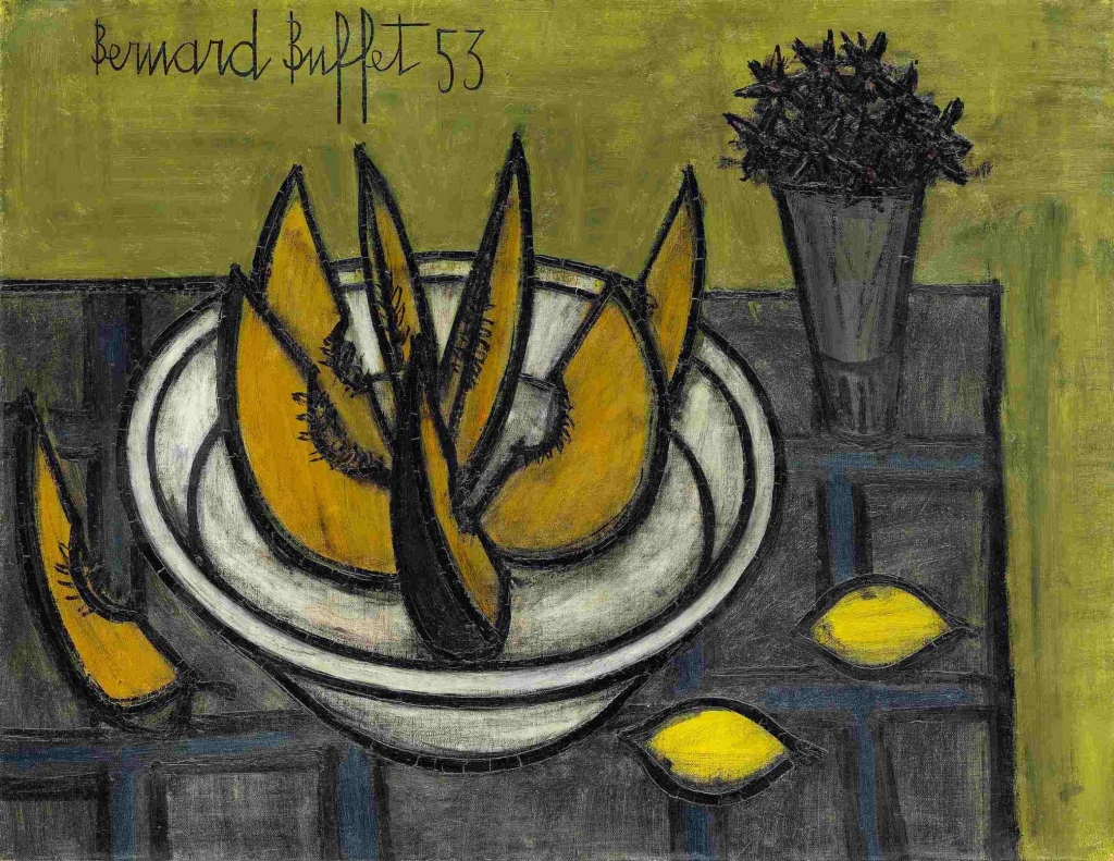 而本季也特別呈現看向巴黎「不定形藝術」畫派當中抒情抽象先驅喬治.馬修,兩件經典作品《歐西里斯的誕生》與《睿智》展示穿梭在抽象藝術、行動繪畫、抒情表現的領域,使之具有速度性、表演性質成為令人驚嘆的美學饗宴。與其相對的藝術風格——新表現主義的代表人物貝納德.畢費《有哈密瓜的靜物》畫面中出現不可迴避的冷靜凝結,透過觀者的感知,改變了描繪對象本身的屬性,更超越了藝術家創作時賦予的寄託。