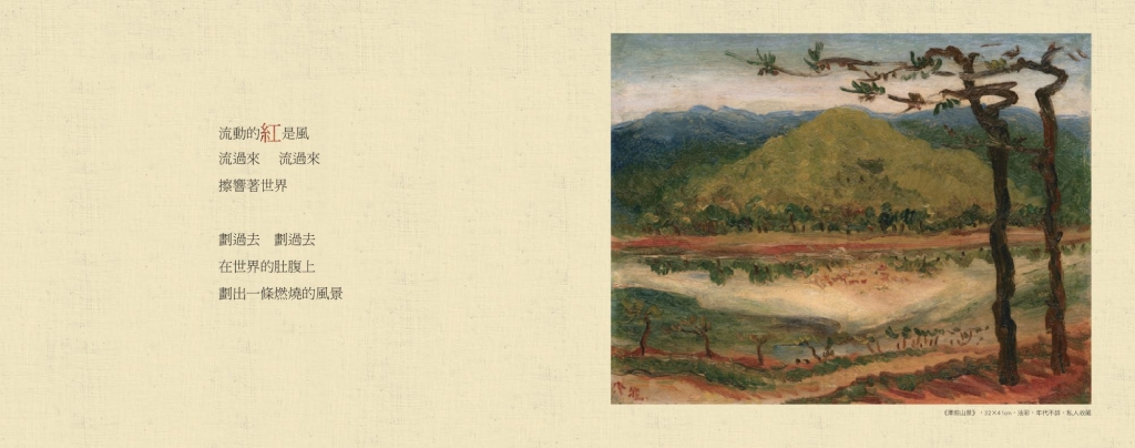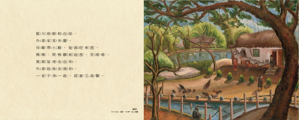 在他的畫作中,故鄉的風土人情處處精彩──不論是家附近的媽祖廟、馬路上的電線杆、嘉義公園蓬勃生長的樹,或者是嘉義近郊的雲影山光、彰化農家的田間水鄉、阿里山的澎湃雲海,都是值得紀錄的瞬間。在他的筆下,這些瞬間都定格成永恆。