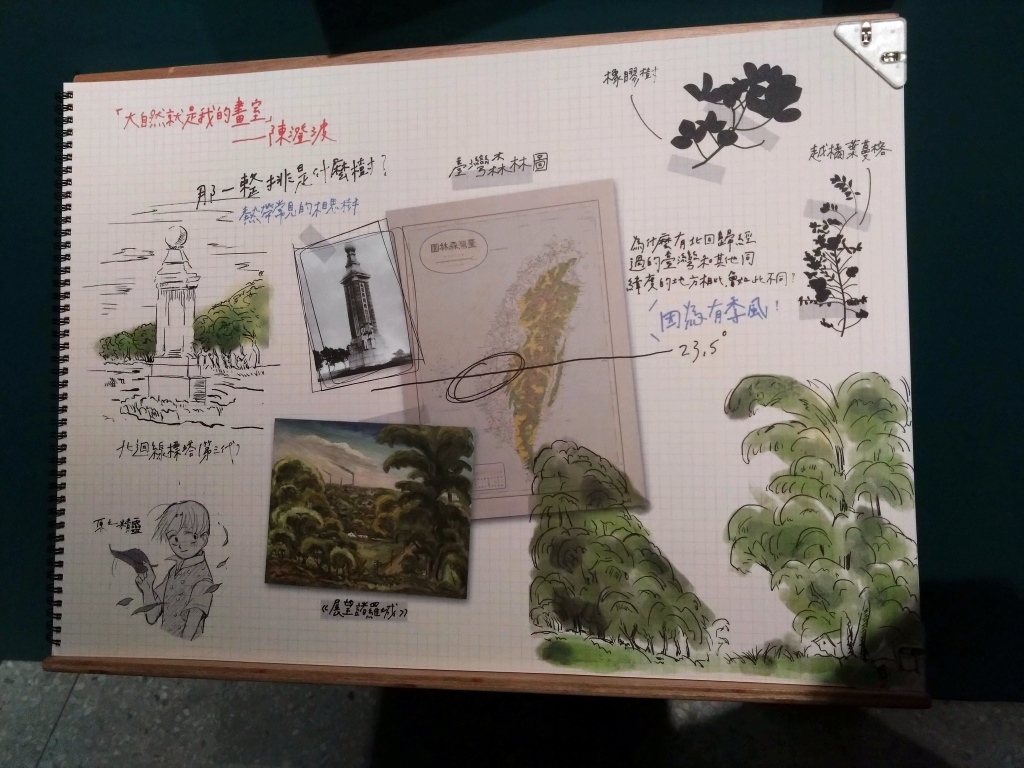 同樣地,這次的展覽,也是藝術、博物學和科技三軸交會的成果:用陳澄波的八幅畫作加上一幅鹽月桃甫的寫生為線索,博物學的自然探索筆記為嚮導,動畫與媒體科技再創作為輔助,打造出一個有山有海的微型台灣,讓參觀者能夠浸淫其中,用感官去體驗陳澄波所熱愛的這塊土地,進而去思考台灣的獨特性。
