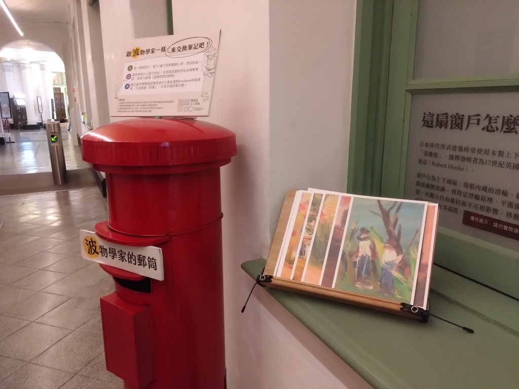 此外,在展間外的走廊上還設有「波物學家的郵筒」,讓觀眾能夠寫下觀展心得投入其中。心得回饋單設計成明信片,恰如陳澄波在寫生途中總是寄送明信片給親友報信一樣。