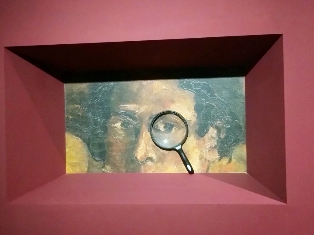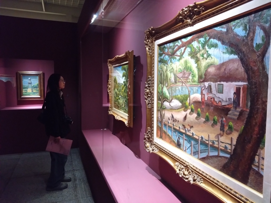 陳立栢董事長告訴我,經過調查,他們發現來臺博館參觀的群體多半是國一國二的學生。為此,策展團隊配合14歲學生147公分平均身高的視線,將畫作的懸掛高度降低到畫心中線137公分,是個體貼國中生的視角,而大人們也不會太辛苦的高度。