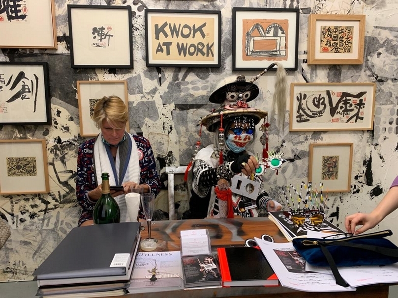 10號贊善里畫廊呈獻 「蛙王」郭孟浩的作品,作風大膽怪誕、精力旺盛的「蛙王」是一位意志頑強的香港藝術家,善於運用水墨書法作為概念藝術工具通過揉合身體動作及混合媒介,他創作的多媒體裝置、表演和行為常常發生在由棄置物和日常用品整合而成的多元環境中。(謝盈盈提供)